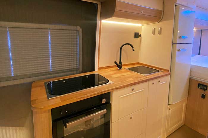 Motokaravanlarımızda, fonksiyonellik ve estetik bir arada sunulur. Mutfak alanı, modern ve kullanışlı bir şekilde tasarlanmıştır. Yüksek kaliteli malzemeler kullanılarak yapılan mutfak mobilyaları, seyahatlerinizde ihtiyaç duyduğunuz tüm konforu sağlar.